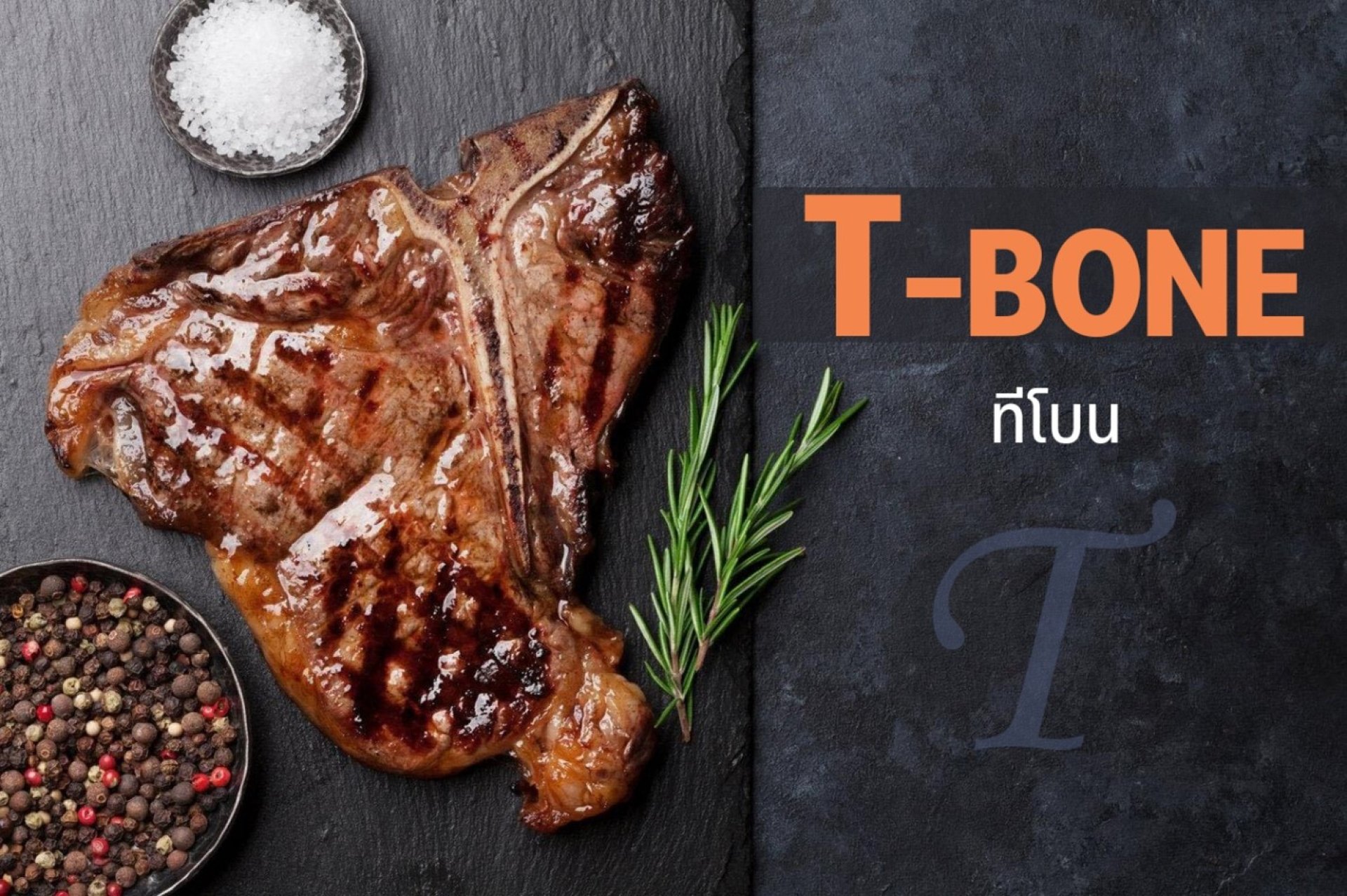ทีโบน (T-Bone) คือเนื้อสันที่ตัดมาจากส่วนเอวของวัว มีชื่อเรียกอีกชื่อว่าช็อตลอยน์ (Short Loin) จะตัดมาพร้อมกับกระดูกที่เป็นรูปตัว T คั่นระหว่างเนื้อส่วนสันนอก (Striploin) และเนื้อส่วนสันใน (Tenderloin) จะให้เนื้อสัมผัสและรสชาติที่แตกต่างกันทั้งสองฝั่ง โดยฝั่งสันนอกจะได้ความหอมจากไขมันด้านมัน รสชาติเนื้อที่เข้มข้น ส่วนฝั่งของเนื้อสันใน จะให้ความนุ่ม ชุ่มฉ่ำแบบไร้ที่ติ เรียกได้ว่าในหนึ่งชิ้นมีครบทุกอย่างจริงๆ
