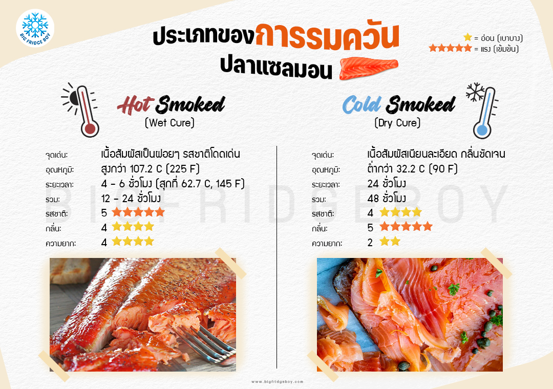 ประเภทการรมควันปลาแซลมอน (Hot vs Cold)