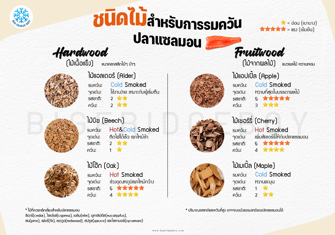 - ให้ระวังไม้ที่มียางเพราะจะทำให้ปลาแซลมอนมีรสชาติขมได้