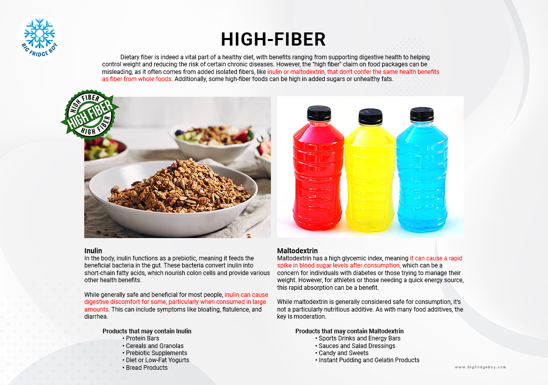 ไฟเบอร์หรือเส้นใยอาหารเป็นส่วนสำคัญของอาหารเพื่อสุขภาพอย่างแท้จริง โดยมีประโยชน์มากมายตั้งแต่การช่วยระบบทางเดินอาหารที่ดีขึ้น ไปจนถึงช่วยควบคุมน้ำหนักและลดความเสี่ยงของโรคเรื้อรังบางชนิดได้ อย่างไรก็ตาม ฉลาก "ไฟเบอร์สูง" บนบรรจุภัณฑ์อาหารอาจทำให้เข้าใจผิดได้ เนื่องจากมักมาจากไฟเบอร์ที่แยกได้ เช่น อินนูลินหรือมอลโตเด็กซ์ตริน ซึ่งไม่ได้ให้ประโยชน์ต่อสุขภาพเท่ากับไฟเบอร์ที่มาจากมื้ออาหารจริงๆ นอกจากนี้ อาหารที่มีเส้นใยสูงบางชนิดอาจมีน้ำตาลหรือไขมันที่ไม่ดีต่อสุขภาพสูง