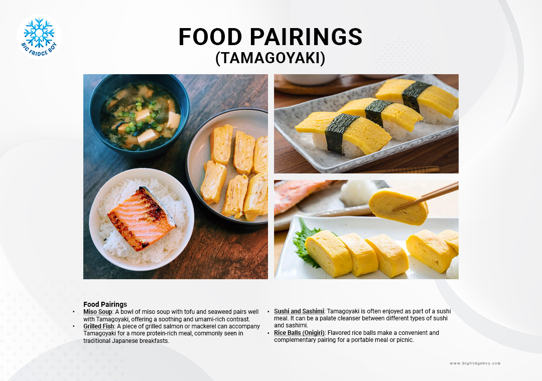 ในอาหารญี่ปุ่น ไข่หวานญี่ปุ่นมักรับประทานเป็นอาหารเช้า โดยรวมอยู่ในกล่องเบนโตะ หรือเสิร์ฟเป็นกับข้าว แสดงถึงความเรียบง่ายและสง่างาม ประณีตของการทำอาหารญี่ปุ่น ซึ่งต้องใช้ทักษะและความใส่ใจในรายละเอียดทุกขั้นตอนในการทำ