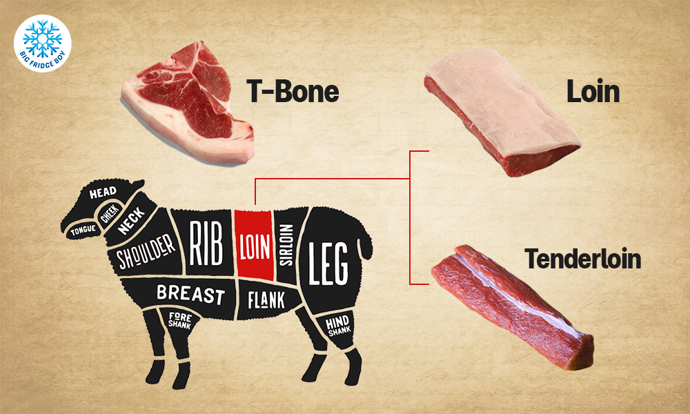เนื้อแกะทีโบน เนื้อสันนอกแกะติดกระดูก (Loin Chop) เนื้อส่วนนี้มาจากส่วนกลางลำตัวของแกะ บริเวณค่อนไปทางด้านหลัง เนื้อส่วนทีโบนของแกะ (Loin Chop) นี้ จะประกอบด้วยเนื้อสันนอกของแกะ (Lamb Loin) และเนื้อสันใน (Lamb Tenderloin) โดยมีกระดูกที่ลักษณะคล้ายมินิตัวทีแบ่งระหว่างเนื้อ 2 ส่วนนี้อยู่ เนื้อส่วนนี้เหมาะอย่างมากในการนำไปย่าง หรือทอดบนกระทะ เสริฟคู่กับสลัดหรือผักย่างต่างๆ ราดด้วยบัลซามิก (Balsamic Vinegar) อร่อยอย่าบอกใคร