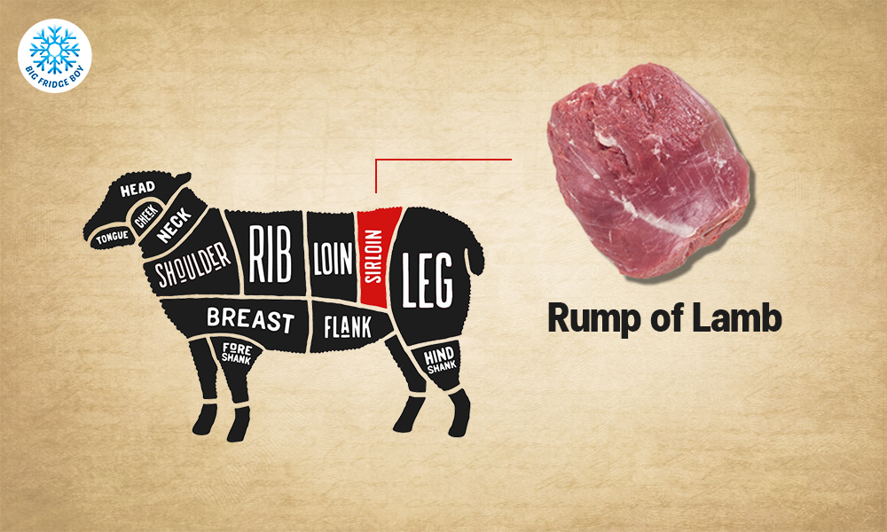 คือเนื้อแกะส่วนบริเวณค่อนไปทางด้านหลังของแกะ เนื้อส่วนนี้จะเป็นเนื้อส่วนที่มีปริมาณไขมันน้อย เป็นเนื้อส่วนที่นุ่มกำลังดี ไม่มีความกระด้างของเนื้อมากเกินไป เป็นเนื้อส่วนที่มีจุดเด่นเรื่องรสชาติที่ดีอีกหนึ่งส่วน รองจากเนื้อซี่โครงแกะเลย เนื้อสะโพกแกะ (Rump of Lamb) ส่วนนี้ไม่ควรปรุงให้สุกจนมากเกินไป (Overcooked) มิเช่นนั้นเนื้อจะกระด้างและแห้ง จะนิยมอย่างมากในการนำมาจี่บนกระทะให้สีสรรด้านนอกน่าทาน (Pan-Seared, Pan Fried) จากนั้นนำเนื้อเข้าอบ เพื่อให้เนื้อพอสุกไปถึงด้านใน จากนั้นนำมาสไลด์และตกแต่งบนจาน เวลาสไลด์ออกมาจะเห็นเนื้อสีชมพูด้านในสวยงาม น่าทานที่สุด หากจะหาเนื้อแกะส่วนดีๆส่วนหนึ่ง Big Fridge Boy เราก็แนะนำเป็นส่วนสะโพกแกะส่วน Rump นี่เช่นเดียวกัน