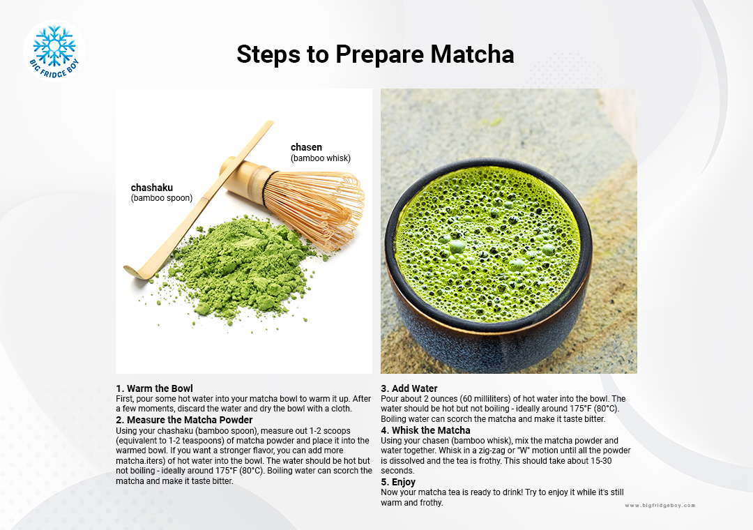 หากไม่ได้วางแผนที่จะใช้มัทฉะภายในสองสามสัปดาห์หลังจากเปิด ให้เก็บไว้ในตู้เย็น 1-4°C (34-39°F) อุณหภูมิที่เย็นสามารถช่วยรักษาคุณภาพของมัทฉะได้ อย่างไรก็ตาม ตรวจสอบให้แน่ใจว่าภาชนะบรรจุนั้นปิดสนิทก่อนที่จะนำไปแช่เย็น เนื่องจากมัทฉะสามารถดูดซับกลิ่นจากอาหารอื่นๆได้ เมื่อนำออกจากตู้เย็น ปล่อยทิ้งไว้สักพักให้เป็นอุณหภูมิห้องก่อนเปิดภาชนะเพื่อหลีกเลี่ยงการควบแน่นภายใน - บริโภคทันที