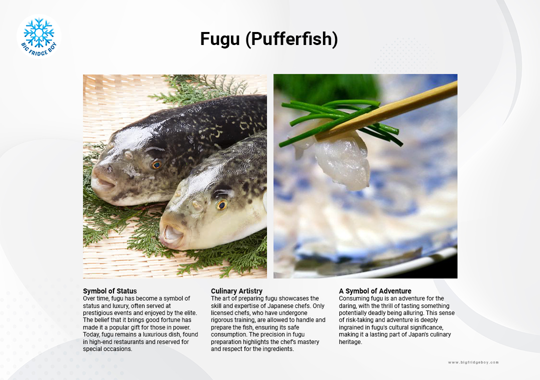 Over time, fugu became a symbol of status and luxury. The fish was often served at important banquets and gatherings, and its high price tag made it a delicacy reserved for the elite. It was believed that consuming fugu could bring good fortune, and it was often presented as a gift to those in power. In modern times, fugu is still considered a luxurious dish, often served at high-end restaurants and special occasions.