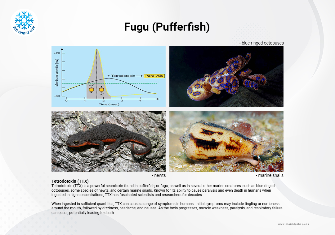 Tetrodotoxin (TTX) is a powerful neurotoxin found in pufferfish, or fugu, as well as in several other marine creatures, such as blue-ringed octopuses, some species of newts, and certain marine snails. Known for its ability to cause paralysis and even death in humans when ingested in high concentrations, TTX has fascinated scientists and researchers for decades.
