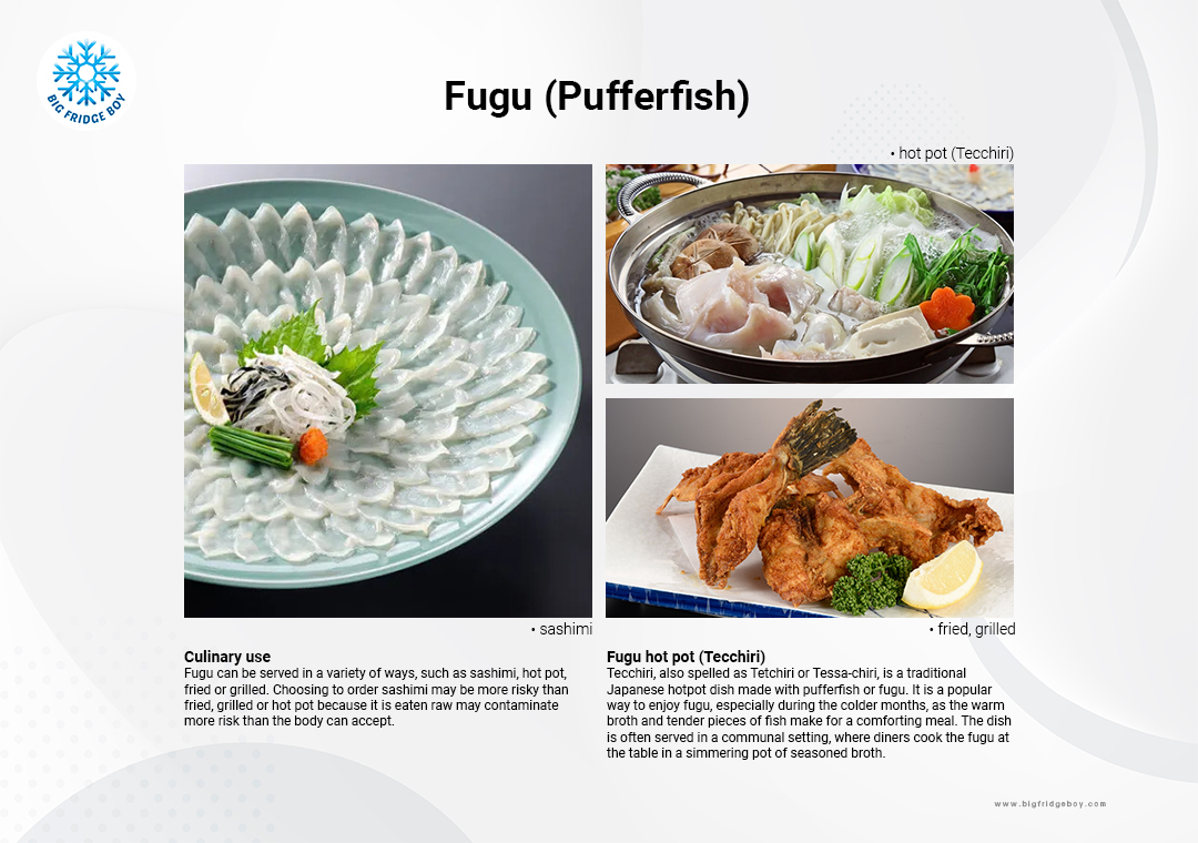 Fugu can be served in a variety of ways, such as sashimi, hot pot, fried or grilled. Choosing to order sashimi may be more risky than fried, grilled or hot pot because it is eaten raw may contaminate more risk than the body can accept. - Avoid consuming the liver and other toxic parts